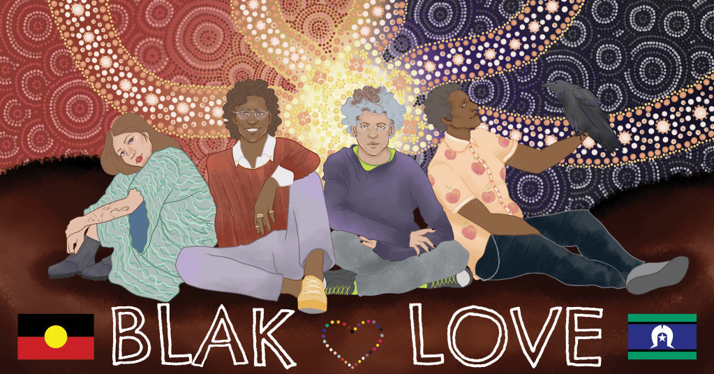 Blak Love is an expression of different forms of love for mob. That love may be love of self, family, community, platonic/romantic/sexual/sensual partners, and/or country. Blak Love will be explored through an online showcase of artists throughout June, and an in-person event in July.