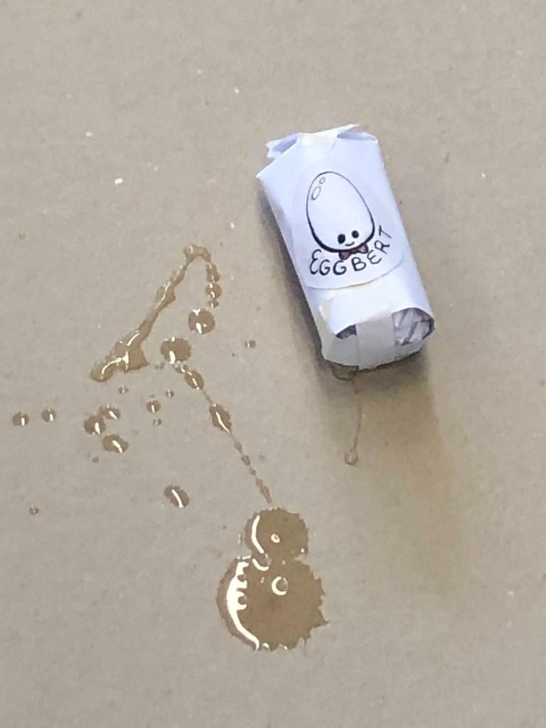 The egg drop challenge involved creating protective packaging for a raw egg, in which it could be dropped from several different heights without breaking.
