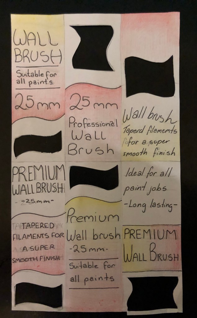 The challenge was to find a paint brush from Bunnings, $5 or under, and redesign the packaging for it to increase the value of the product. My goal was to redesign it in such a way that you could potentially double the price without the re-branding process costing the company substantially.